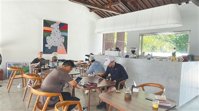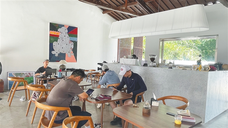 顺着林金盾杂货铺所在秋菊路步行至海滩,海角老爸茶、梅山餐厅、陈如东杂货铺、小舅早餐店、秋菊家·小酒馆……沿途不同经营内容的商铺各具特色,店主们忙碌的身影穿梭其中,店中说着不同方言的游客正仔细挑选着心仪的商品。