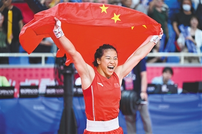 10月3日,杭州亚运会拳击项目首枚金牌产生。在女子50公斤级决赛中,中国姑娘吴愉以5:0战胜泰国选手拉沙夺冠。赛后吴愉说:“非常自豪拿到这枚金牌,观众给了我很足的力量。”
