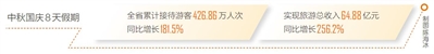 中国旅游研究院院长戴斌认为,今年中秋国庆假期的旅游数据表明了旅游经济正在恢复常态。同时,旅游业的高质量发展也进入了一个理性繁荣的新阶段,旅游经济更多地转移到文化、创意、资本、资产、人才这些核心动能上,步入市场内生和创新驱动的新常态。