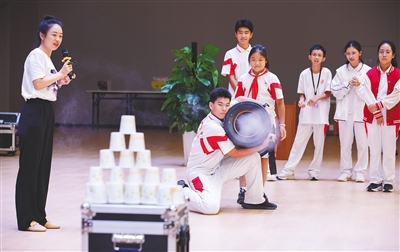 一个等离子体球加日光灯管能“造出”电影《星球大战》中的“光剑”,冒着白气的干冰能吹气球还能放在肥皂水里吹出泡泡,空气流体机通过压缩、释放气体实现了“隔空打牛”的效果……实验环节,在中国科学院合肥物质院等离子体所和中核集团核工业西南物理研究院聚变科学所科研人员的带领下,同学们完成了等离子体光剑实验、磁悬浮灯泡等5个科学实验,以生动、直观的方式展示了和“人造太阳”相关的科学原理。