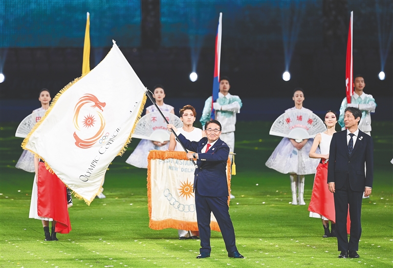 闭幕式上的会旗交接仪式。