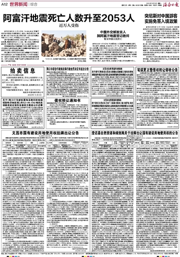 新华社喀布尔10月8日电 (记者赵家淞)阿富汗临时政府国家灾难管理和人道主义事务部发言人贾南·赛义克8日告诉记者,阿西北部7日发生的地震已导致2053人死亡,另有超过9200人受伤。