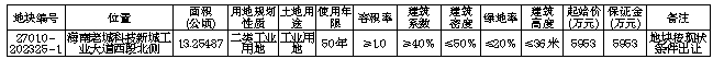 (二)其他规划控制条件。建筑退道路、绿化带红线距离:西侧、北侧退绿化带红线距离12米;建筑退用地界线距离:应符合日照、消防、视觉卫生、防灾、抗震等要求;建筑间距满足国家、海南省的相关规定。机动车停车位按不少于0.15个/100平方米计容建筑面积标准配建。工业项目所需行政办公及生活服务设施用地面积不得超过工业项目总用地面积的7%。(三)宗地净地情况。该地块土地征收工作已完成,土地权属清晰,土地补偿款、安置补助费、青苗补助费和地上附着物等款项均已补偿到位。目前该地上的附着物已清表、无法律经济纠纷、土地开发利用规划条件明确、符合土壤环境质量要求。地块周边可以满足施工建设所需的水、电供应,相关设备、机械可以进场施工,具备净地出让的条件。经查询全国污染地块土壤环境管理系统,该地块不在系统污染或疑似污染地块范围内。经核查,该宗地不属于非法占地、违法建设行为已经处置到位并组织供应的土地。二、本次国有建设用地使用权挂牌出让设有底价,按照出价最高且不低于底价的原则确定竞得人。三、开发建设要求:(一)按照《海南省建设用地出让控制指标(试行)》有关规定,该宗地块设定出让控制指标,具体如下:项目达产时间为签订《国有建设用地使用权出让合同》后的第5年,在约定达产时间内投资强度不低于250万元/亩;自项目达产之日起税收不低于12万元/亩/年,产值不低于500万元/亩/年。项目按4亩安置1名失地农民就业,在同等条件下优先招录本市县户籍居民。招录条件按人事劳动部门规定执行,同工同酬并遵照乙方规章制度管理。以上控制指标按规定列入《海南省产业项目发展和用地准入协议》,属于协议内容的组成部分。(二)其他开发建设要求。1.竞得人取得土地使用权后,应严格按照规划设计要求和《国有建设用地使用权出让合同》的约定进行开发建设。涉及水务、绿化、环保、消防、交通管理等的设计施工,应符合国家和海南省的有关管理规定。2.涉及装配式建筑的,按照我省装配式建筑相关规定和澄迈县住房和城乡建设局相关要求执行。3.该宗地位于地质灾害非易发区,无需开展地质灾害危险性评估。4.竞得人应在按现状交地后三个月内开工建设,按海南省住房和城乡建设厅发布的《建设工程文明施工标准》(琼建定〔2016〕299号)在宗地范围内修建围墙。四、竞买申请:(一)竞买资格及要求。1.中华人民共和国境内外的自然人、法人和其他组织均可参加竞买(法律另有规定的除外)。属境外机构(含港、澳、台地区)申请参加竞买的,按照规定需提交商务主管部门核发的《外商投资企业批准证书》和提交市场监督管理部门核发的《营业执照》。本次挂牌出让不接受联合竞买。失信被执行人不得参加本次竞买。根据海南老城科技新城入驻要求,竞买人及申请项目须符合海南老城科技新城产业规划以及准入条件。2.具有下列行为的自然人、法人和其他组织不得参加本次挂牌出让:(1)在澄迈县范围内有拖欠土地出让金的行为,并未及时改正的;(2)在澄迈县范围内有闲置土地,违法利用农村集体土地建设商品住房、擅自改变土地用途等违法行为,并未及时改正的。(二)交易资料获取方式。本次挂牌出让的详细信息和具体要求,见挂牌出让手册及其他相关文件。手册和文件可从海南省建设用地使用权和矿业权网上交易系统(网址:http://lr.hainan.gov.cn:9002)查看和打印。也可以到澄迈县土地交易所(澄迈县金江镇文化北路110-4号)咨询和领取。(三)竞买申请方式。本次交易活动竞买申请环节采取线下方式进行,有意竞买者请于2023年10月9日09时00分至2023年11月7日16时00分到澄迈县土地交易所提交书面申请,不接受电话、邮寄、口头等其他形式的申请。竞买申请地点:澄迈县土地交易所(澄迈县金江镇文化北路110-4号)。(四)竞买保证金。竞买申请人在竞买报名时须向指定账户足额缴存竞买保证金或使用银行保函方式提供竞买保证金。缴存竞买保证金的币种为人民币,不接受外币,且不属于银行贷款、股东借款、转贷和募集资金所得,并出具承诺。竞买保证金到账截止时间为:2023年11月7日16时00分(北京时间)。竞买人使用银行保函方式缴纳竞买保证金的,保函应为不可撤销、见索即付保函,保函担保金额应不少于全额土地竞买保证金,保函的保证期限应当自保函开立之日起至招标拍卖挂牌交易活动结束后不少于60日,保函须在保证金交纳截止时间前2个工作日内送达澄迈县自然资源和规划局。(五)资格确认。经审核,竞买申请人符合竞买资格,且竞买保证金或银行保函已按要求交纳的,澄迈县自然资源和规划局将发放《竞买资格确认书》,确认其获得竞买资格。竞买资格审核时间:2023年10月9日09时00分至2023年11月7日17时30分(北京时间)。五、挂牌报价时间及地点:(一)本次交易活动挂牌报价竞价环节采取线下方式进行,获得竞买资格的竞买人应持发放的《竞买资格确认书》到指定地点参与报价竞价活动。挂牌报价阶段仅接受书面报价,不接受电话、邮寄、电子、口头等其他方式报价。(二)挂牌报价时间:2023年10月30日09时00分至2023年11月9日10时00分,受理报价时间为工作日08时30分至11时30分、14时30分至17时00分(北京时间)。(三)挂牌报价地点:澄迈县土地交易所(澄迈县金江镇文化北路110-4号)。(四)挂牌现场会地点:海南省公共资源