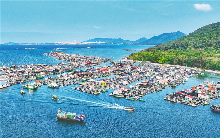 400多户疍家渔排在新村港星罗棋布,食客一边吃着疍家特色美食,一边欣赏壮观独特的场景。作为土生土长的疍家人,郭玉光希望能借助“旅游+文化”深度融合的方式,进一步加强对疍家文化的保护传承和活化利用,把疍家故事讲给更多人听。这些年来,他一直为此而努力。