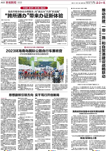 深化人文交流。发挥保税航油、航权开放和免签政策效应,开通、加密更多直达国际航线、航班。持续推动落实更加开放的免签、落地签入境政策,提升“一带一路”合作伙伴签证便利化水平。加强与“一带一路”合作伙伴尤其是东盟国家企业、民间机构、人员在教育、医疗、文化、体育等领域的交流合作,在建设21世纪海上丝绸之路重要战略支点上迈出更加坚实的步伐。(新华社海口10月8日电)