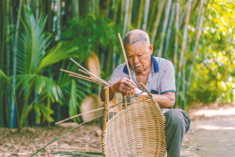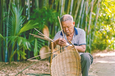 竹编簸箕堆起来也能成为一道风景?还有人专程赶来拍照留念?在位于儋州市南丰镇的云舍松涛·海南中国村,84岁的老农黄记城觉得惊喜,又有点想不明白。
