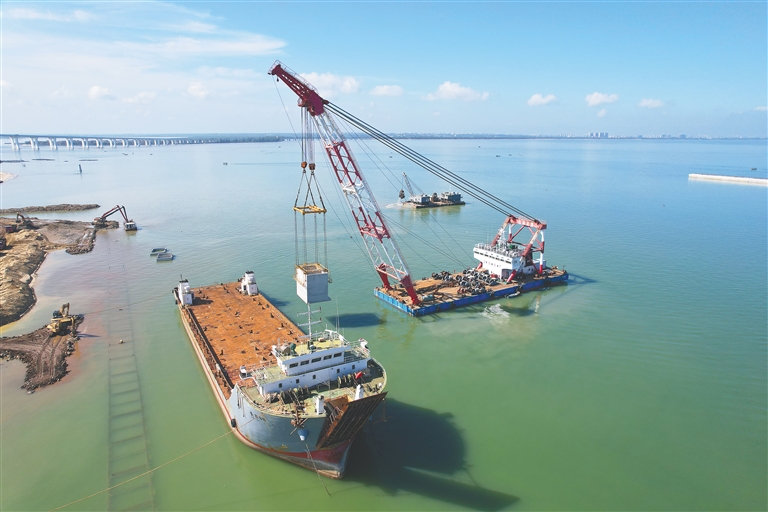 近日,在文昌铺前中心渔港项目现场,随着最后一块沉箱平稳着落基床,该项目所有沉箱顺利完成安装。目前该项目已完成建设总进度的70%,预计明年6月底全面竣工。