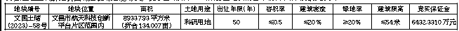 二、公示期限:自2023年10月12日至2023年11月13日止。三、意向用地者申请方式:在公示时限内,中华人民共和国境内外的法人、自然人或其他组织(法律另有规定者除外)均可申请参加竞买(注:失信被执行人不得参与申请),申请人应单独申请竞买,本次出让不接受联合体竞买,不接受申请人电话、邮寄、电子、口头申请。对本公示所列出让地块有意向的,以书面方式向文昌市自然资源和规划局提交如下申请文件:(一)意向用地者申请书(原件);(二)意向用地者有效身份证明文件(复印件);(三)授权委托书(原件)及被授权人有效身份证件(复印件)。四、经政府相关部门核实,在文昌市境内申请人存在下列情形之一的,申请人及其控股股东禁止参加协议出让:(一)存在伪造公文骗取用地和非法倒卖土地等犯罪行为的;(二)存在非法转让土地使用权等违法行为的;(三)因企业原因造成土地闲置一年以上的;(四)开发建设企业违背出让合同约定条件开发利用土地的;(五)拖欠土地出让金的。五、申请人须按照挂牌出让手册的有关规定向指定账户足额缴存竞买保证金。按照《海南省自然资源和规划厅关于海南省土地交易市场竞买保证金可使用银行保函的通知》(琼自然资规〔2022〕7 号)要求,竞买人也可使用银行保函方式缴纳竞买保证金,保函应为不可撤销、见索即付保函,保函担保金额应不少于全额土地竞买保证金,保函的保证期限应当自保函开立之日起至招标拍卖挂牌交易活动结束后不少于60日,保函需在保证金交纳截止时间前2个工作日内送达文昌市自然资源和规划局。竞买保证金到账截止时间为:2023年11月13日17时00分(北京时间)。六、申请递交:(一)联系地址:文昌市自然资源和规划局三楼自然资源权益和开发利用室或海口市美兰区国兴大道61号盛达商务广场7层709、710房;(二)联系人:林先生 云先生;(三)联系电话:0898-63330100 13111995159 。七、确定供地方式:公示时限内若该出让地块只有一个意向用地者,将按《协议出让国有土地使用权规定》(国土资源部第21号令)和《协议出让国有土地使用权规范(试行)》(国土资发〔2006〕114号)有关规定,以协议方式出让该宗国有建设用地使用权;若有两个或两个以上意向者,将以招标、拍卖或挂牌方式出让该地块国有建设用地使用权。八、协议出让现场会举行时间及地点:2023年11月14日10时00分在文昌市自然资源和规划局五楼会议室。