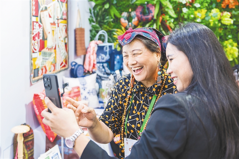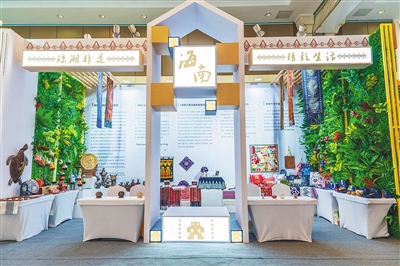 海南馆集中展示了黎族传统纺染织绣技艺、海南椰雕、沉香造香技艺、黎族民歌、黎族竹木器乐等海南非遗项目,不仅有非遗的文创产品、工艺品、旅游商品等,还有非遗传承人活态展示传统技艺和传统歌舞,让更多成都市民游客一睹海南非遗的绚丽多彩和独特魅力,吸引更多人走近海南非遗、了解海南非遗。
