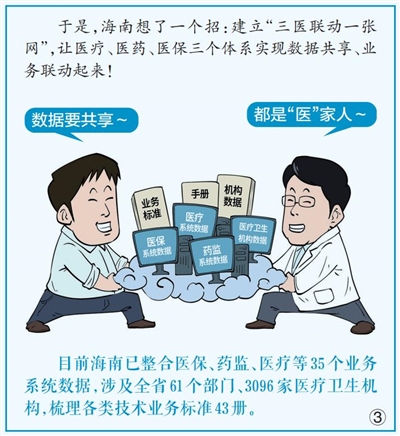 医疗、医药、医保,是保障群众健康权益的“三驾马车”,如果缺乏协同联动,各行其道,就无法满足群众更高效便捷的看病需求。近年来,海南多部门联动,利用大数据、人工智能等新技术,打造“三医联动一张网”,让这“三驾马车”并驾齐驱,正在改变患者传统的就医方式,也在一定程度上缓解了医疗资源的供需矛盾。