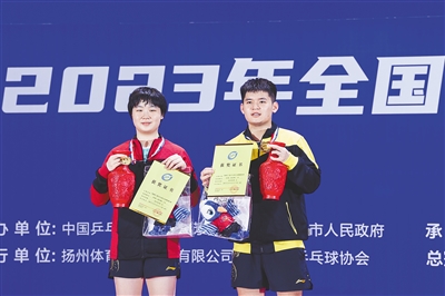 本报海口10月12日讯(记者王黎刚)海南日报记者从海南体育职业技术学院获悉,10月12日晚,2023全国乒乓球锦标赛混双决赛在江苏省扬州市体育公园体育馆举行,海南省乒乓球队林诗栋和四川省乒乓球队蒯曼组成的“跨省组合”发挥出色,在决赛中3:0轻取向鹏/刘炜珊,夺得冠军。这也是海南建省办经济特区35年来,海南乒乓球选手获得的第一个全国乒乓球锦标赛冠军。