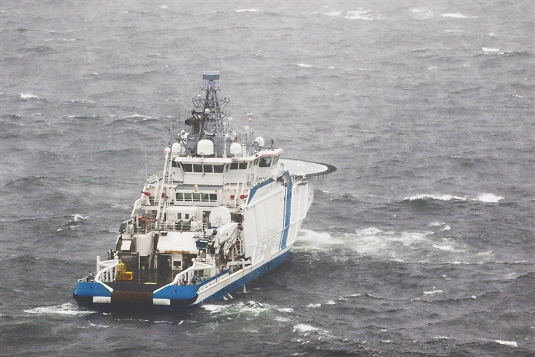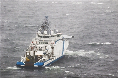 这张由芬兰边防军提供的照片显示,10月11日,芬兰边防军的船只在芬兰湾海底天然气管道泄漏事件现场附近警戒。