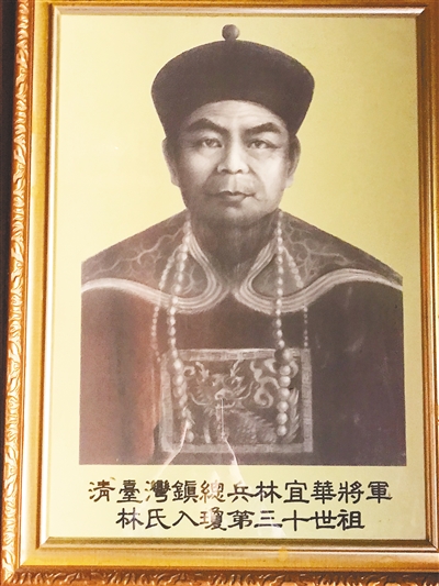 屋内墙上有一幅林宜华的画像,镜框中的他年约五旬,身着官服,圆面有须,眼神威严,一对轩然浓眉尤其叫人印象深刻。