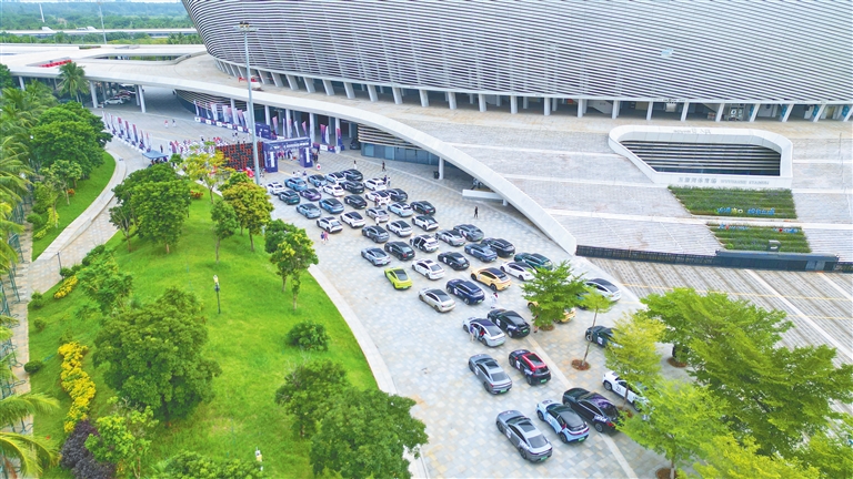10月14日上午,2023中国(海南)国际新能源汽车拉力赛(环岛赛)发车仪式在海口五源河体育场举行,来自全国的10支车队、60台新能源汽车、300余名赛员及随行人员将开启6天的环岛之旅。本次拉力赛环岛赛全程1080公里(含转场),其中集结赛将环岛东线的大部分赛段合并到海南环岛旅游公路上,参赛选手可以领略沿海的多种风景。文/本报记者 王黎刚 图/本报记者 封烁