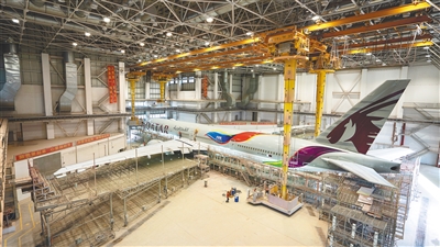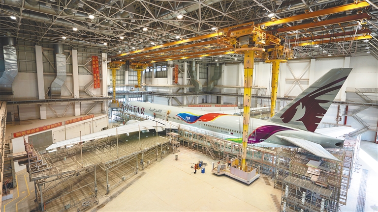 据介绍,此次接受喷涂维修的B777-300ER型飞机是海南自贸港首次承接的新机型,也是国内首单来自卡塔尔的进境飞机喷涂维修业务。
