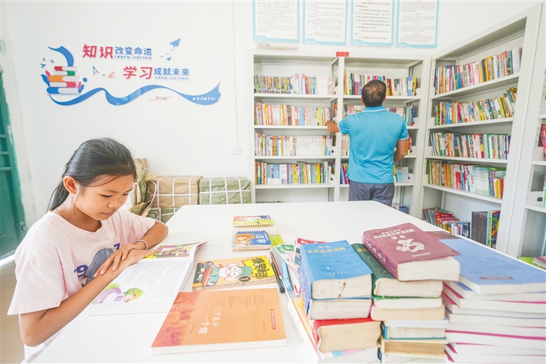 近日,在东方市天安乡光益村农家书屋,孩子在书屋安静地阅读。