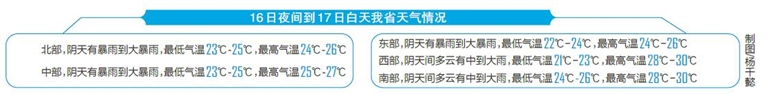 16日至17日,海口阴天有暴雨,局地大暴雨,且降雨时段主要集中在16日至17日上午。16日早上班高峰期、17日早上班高峰期的海口潮位较高,如叠加强降雨或长时间降雨,在高潮位海水顶托下极易形成城市内涝,将对交通出行造成影响。