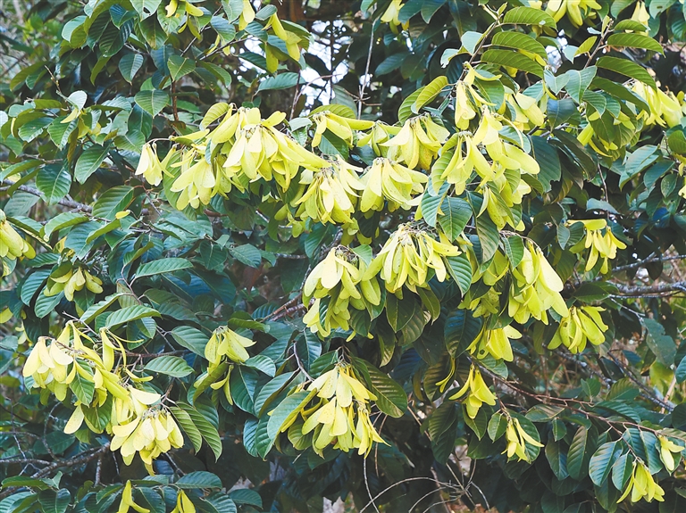 形态特征:树高可达20米以上,自然散发香味。叶呈椭圆形或长圆状椭圆形,花萼裂片似安装在果实两侧的一双翅膀,待种子成熟,它们便一起脱离母树,飞向远方。