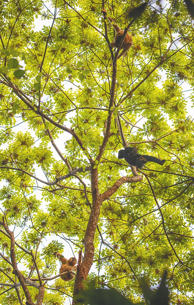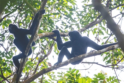 海南长臂猿家族近年来频传喜讯,这一世界最濒危灵长类物种种群已从2020年的5群33只增至如今的6群37只。