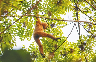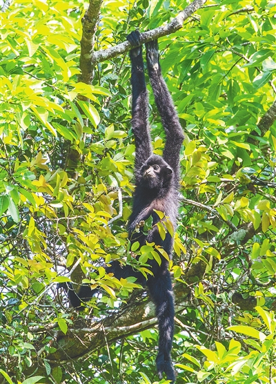 随着近年来有关部门不断充实监测队员力量,并陆续在长臂猿活跃的区域布设一批红外相机等科技力量,也捕捉到更多关于长臂猿“不寻常”的生活场面。