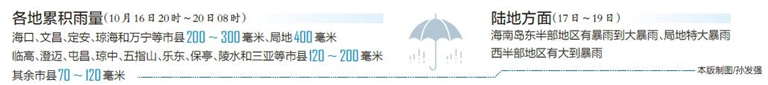 本报海口10月16日讯 (记者张期望)记者从省气象台了解到,预计10月17日~19日,受发展中的热带扰动和偏东急流共同影响,我省将有一次强风雨天气过程,其中海口、文昌、定安、琼海和万宁等市县累积雨量可达200~300毫米、局地400毫米。17日琼州海峡将出现8~9级阵风。