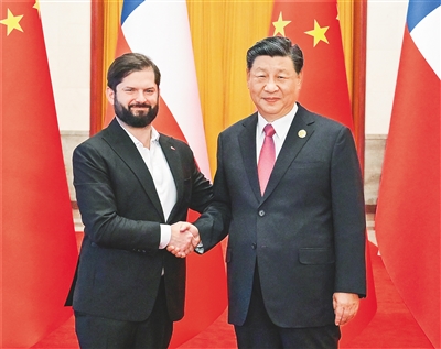 博里奇表示,我非常荣幸来华出席第三届“一带一路”国际合作高峰论坛并进行国事访问。智利在拉中关系发展中创造了很多第一,智方深感骄傲。智方高度欣赏中华文明,敬佩并祝贺中国在减贫、反腐等方面取得的伟大成就,感谢中国在智利面临新冠疫情等困难时提供无私帮助。智方始终坚定恪守一个中国原则,将继续在各种场合给予中方坚定支持。习近平主席提出的共建“一带一路”倡议,源自中国5000多年传统文化,基于平等和相互尊重原则,已经成为世界各国开展互利合作的重要平台和实现共同发展的重要机遇,智方高度评价并将继续积极参与。智方着眼长远思考和谋划同中国的关系发展,希望以此访为契机,加强环保、减贫、能源、科技、矿业等领域合作,深化人文交流,欢迎中国企业赴智开展投资合作,推动智中关系继往开来,进入更高水平发展的新阶段。智方支持中国加入《全面与进步跨太平洋伙伴关系协定》和《数字经济伙伴关系协定》,高度评价中方奉行和平的外交政策,愿同中方密切在亚太经合组织等多边框架内沟通协作,推动全球南方国家加强团结合作,构建人类命运共同体。智利希望成为中国同拉美国家合作的枢纽,为促进拉中关系发展发挥积极作用。