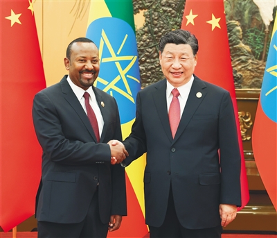 习近平祝贺埃塞俄比亚获邀加入金砖合作机制,指出埃塞俄比亚是共建“一带一路”的重要参与方,10年来中国和埃塞共建“一带一路”合作领域之广、成果之丰都走在中非合作前列。双方要以建立全天候战略伙伴关系为契机,不断巩固友好互信,深化务实合作,推动两国关系取得更多成果,做共同发展、合作共赢的朋友和促进南南团结合作、维护国际公平正义的伙伴。