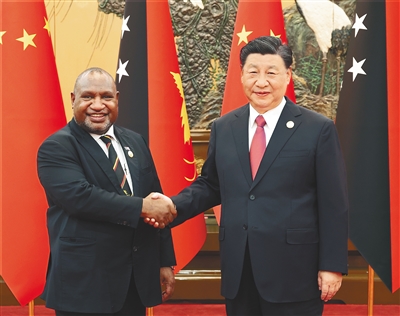 习近平指出,巴新是最早同新中国建交的太平洋岛国之一。建交47年来,两国全面战略伙伴关系日益成熟稳健。中方赞赏巴新恪守一个中国原则,在涉及中国核心利益和重大关切问题上坚定支持中方。中方也将坚定支持巴新维护国家主权、安全、发展利益,走符合自身国情的发展道路,愿同巴新赓续传统友谊,夯实政治互信,拓展合作领域,造福两国人民。