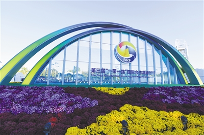 在北京国家会议中心附近拍摄的第三届“一带一路”国际合作高峰论坛景观布置。 新华社发