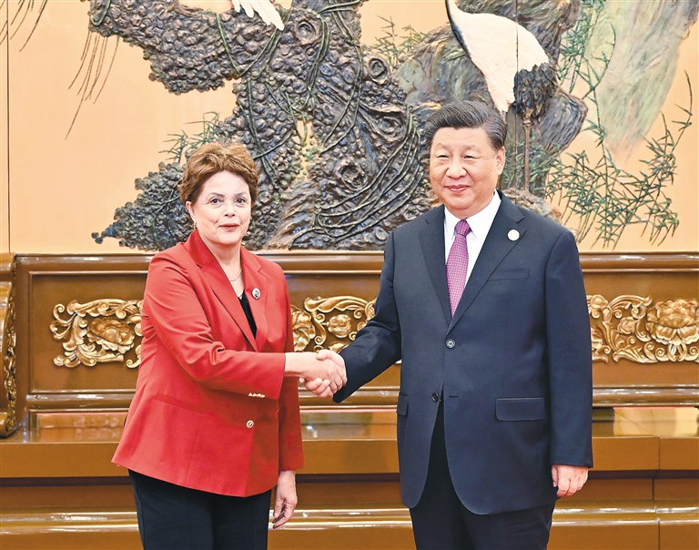 | 10月19日晚,国家主席习近平在北京人民大会堂会见新开发银行行长罗塞夫。