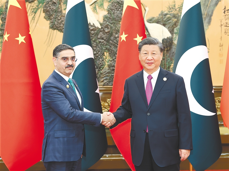 | 10月19日晚,国家主席习近平在北京人民大会堂会见来华出席第三届“一带一路”国际合作高峰论坛的巴基斯坦总理卡卡尔。