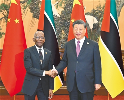 | 10月19日晚,国家主席习近平在北京人民大会堂会见来华出席第三届“一带一路”国际合作高峰论坛的莫桑比克总理马莱阿内。