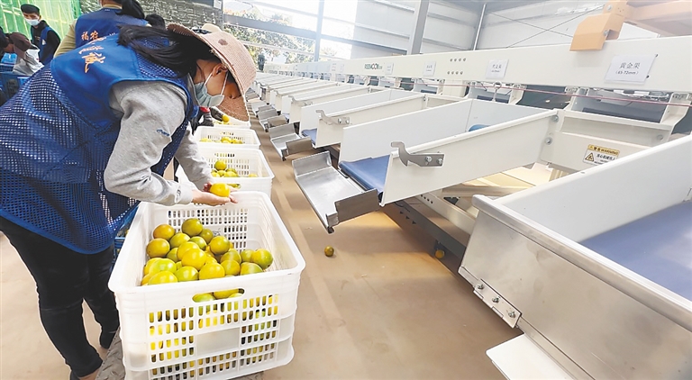 “突突突……”10月17日,随着机器运转,福山农产品分拣集散中心再次响起福橙入筐的声音,一个个圆滚滚的柑橘在全自动化生产线上快速完成分拣。