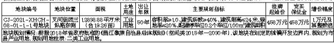 二、竞买申请人需具备的条件:(一)中华人民共和国境内外的法人、自然人和其他组织均可申请参加,申请人应当单独申请。属境外机构和个人(含港、澳、台地区)申请参与竞买的,按照规定需提交相关主管部门核发的《外商投资企业批准证书》和《营业执照》。(二)申请人拟成立项目公司或全资子公司进行开发建设的,应在竞买申请书中明确项目公司或全资子公司的出资构成、成立时间等内容,申请人在项目公司出资比例不得低于50%(不含50%),由项目公司或全资子公司与我局签订《国有建设用地使用权出让合同》,办理土地使用权登记手续。(三)有下列情形之一的申请人,不得参与本次竞买:1.凡在海南省范围内有严重违反土地出让合同、闲置土地、拖欠地价或有其他不良记录的,及与其有参股、控股、投资关系的法人及其他组织。2.失信被执行人。(三)地块产业准入条件:非金属矿物制品业。三、本次国有建设用地使用权挂牌出让设有底价,按照出价最高且不低于底价的原则确定竞得人。四、竞买咨询及报名期限:本次挂牌出让的详细资料和具体要求,见挂牌出让手册及其他相关文件。手册和文件可从海南省建设用地使用权和矿业权网上交易系统(以下简称网上交易系统,网址:http://lr.hainan.gov.cn:9002)查看和打印。竞买人持CA数字证书实名登录网上交易系统进行相关操作,系统注册及证书办理详见《海南省建设用地使用权和矿业权网上交易系统用户手册》。挂牌出让文件所载内容亦为本公告的组成部分。本次国有建设用地使用权实行网上报名线下竞价,有意向的竞买人可登录网上交易系统提交竞买申请,按要求上传竞买申请文件。报名期限:2023年10月20日8:30至2023年11月17日17:00(以竞买保证金实际到账为准)。五、竞买保证金:竞买人须按挂牌起始价全额支付竞买保证金,挂牌成交后,该竞买保证金转作土地出让金。本宗地可采取银行保函方式缴纳竞买保证金,具体要求详见挂牌手册。六、资格确认:经审查,申请人按规定交纳竞买保证金,具备申请条件的,在2023年11月17日17:30前确认其竞买资格。七、挂牌报价时间及地点:挂牌时间:起始时间:2023年11月9日8:30,截止时间:2023年11月21日16:00。挂牌地点:海南省政府会展楼二楼省公共资源交易服务中心土地交易厅203室。本次竞买活动只接受书面报价,不接受电话、邮寄、电子、口头等其他方式报价。受理报名、报价时间:报名报价期限内8:30至11:30,14:30至17:30(节假日除外)。本公告所指时间均为北京时间。八、其他需要公告的事项:(一)地块净地情况:拟出让地块为政府储备地,权属清晰,无争议。土地补偿、安置补助、地上附着物清表均已完成,无法律经济纠纷。土地开发利用规划条件明确、地块不在疑似污染地块范围内。地块周边已通水、通电、通路,完成土地平整,具备动工开发必需的条件。综上,该地块具备净地出让的条件。(二)竞得人须严格按照该地块的规划要求、产业类型及用地控制指标开发建设。(三)竞得人开发建设的项目需符合国家和我省产业准入、生态环境保护要求。(四)本次挂牌出让国有建设用地已具备开发建设条件。竞得人应在按现状交地后6个月内开工建设,自开工之日起9个月内竣工。涉及土地闲置处置问题按照《海南自由贸易港闲置土地处置若干规定》有关规定执行。(五)竞得人应按《海南省产业项目发展和用地准入协议》的要求,须按投资强度不得低于每亩210万元、年度产值不低于每亩168万元和年度税收不低于每亩14万元的标准进行开发建设,准入、其他条件不作具体要求,达产时间(达到生产经营指标的时间)为签订《国有建设用地使用权出让合同》后15个月内。(六)装配式建造要求:所有依法需要办理工程建设手续的项目,除符合以下条件的可不以装配式方式建造外,其余的项目均采用装配式方式建造:1.项目总建筑面积5000平方米以下的。2.项目配套设施单体(垃圾房、配电房等)建筑面积不大于2000平方米,且其总面积不大于项目总建筑面积10%的。3.单体建筑2000平方米以下的新建工业建筑项目。4.其他确因技术原因拟不采用装配式方式建造的项目继续按《关于加快推进装配式建筑发展的通知》(琼府办〔2020〕127号)执行。5.按照《海南省自然资源和规划厅关于海南省土地交易市场竞买保证金可使用银行保函的通知》(琼自然资规〔2022〕7 号)要求,竞买人可使用银行保函方式缴纳竞买保证金,保函应为不可撤销、见索即付保函,保函担保金额应不少于全额土地竞买保证金,保函的保证期限应当自保函开立之日起至招标拍卖挂牌交易活动结束后不少于60日,保函需在保证金交纳截止时间前2个工作日内送达昌江黎族自治县自然资源和规划局。九、本次挂牌事项如有变更,届时以变更公告为准。十、咨询方式:联系地址:昌江黎族自治县人民北路169号或海南省政府会展楼二楼省公共资源交易服务中心;咨询电话:0898-26630913 18976237598;联系人:符女士、刘先生;查询网址:http://zw.hainan.gov.cn/ggzy/;http://lr.hainan.gov.cn;http://www.landchina.com。