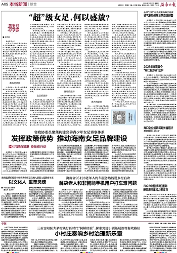 作为省政协委员,近年来,谷山积极推动琼中女足体教融合人才培养工作走深走实,他聚焦青少年校园足球训练体系、女足运动员职业竞赛体系两个重点,锚定竞技体育后备人才选拔、足球场地基础设施建设、引进职业级教练员和体育运营管理团队三大任务等方面积极建言献策,围绕“提升琼中足球场地基础设施建设”“海南引进高端体育人才”等方面提出提案,一批高质量提案得到重视和及时回复。目前,琼中女足的软硬件条件得到显著改善。