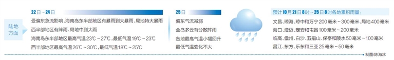 本报海口10月21日讯(记者张期望 通讯员刘爽 郭冬艳)10月21日,海南日报记者从省气象台了解到,今年第16号台风“三巴”刚刚结束对我省影响,受偏东急流影响,未来三天仍将迎来新一轮强降水过程,局地有特大暴雨,在前期累积降雨量大、部分地区土壤水分接近饱和的情况下,尤其要继续做好强降雨及次生灾害的防范工作。