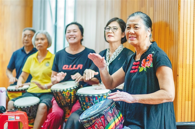 这是81岁老人陈光深一天的“课程表”:早上9时,到位于海口市琼山区高登西街与洗马桥路交叉口的琼山区社区和居家养老服务中心4楼,在智慧养老功能室上网学习;中午11时30分回家吃饭午休;下午2时30分到中心娱乐休闲室和老人们一起唱歌,参加英语、中医理疗、手工等培训。“这里有地方聊天散心、累了有休息室休息、兴趣爱好有地方展示,还能和老伙伴交流心情,过得非常舒心。”陈光深告诉笔者。