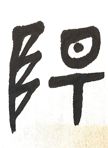 甲骨文的“阳”字(图6)左边是“阜”,有升高的意思;右边上部是“日”,指太阳;下部是“T”,指祭神的石桌,也有学者认为指树枝,表示太阳升到了祭桌或树枝的上方。