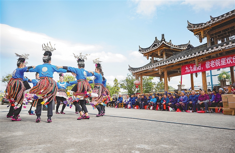 10月23日,在贵州省黔东南苗族侗族自治州丹寨县扬武镇敬老院,志愿者为老人们表演苗族传统舞蹈。 (本栏照片均由新华社发)