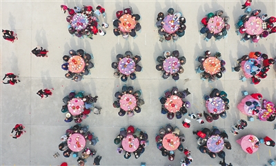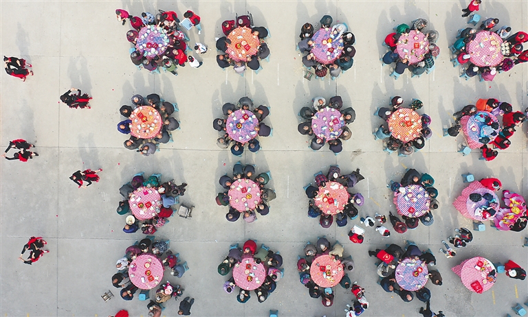 在河北省石家庄市栾城区北赵台村,老人们参加“庆重阳节 孝亲敬老”饺子宴活动。