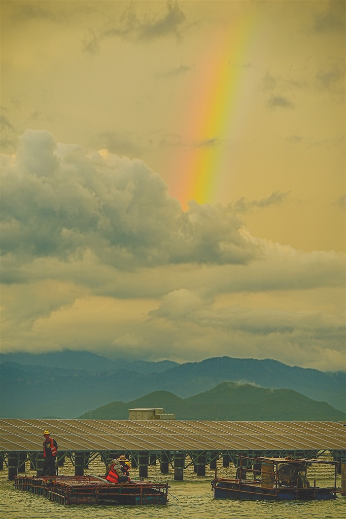 9月23日清晨,乐东黎族自治县莺歌海盐场,3600亩的纳潮湖面上,18.5万块光伏面板一字排开,迎着晨光齐晒“日光浴”。这是海控能源纳潮湖200兆瓦光伏项目,10月11日,该项目首批机组成功并网发电,标志着海南最大的集中式光伏基地建设迈出关键一步。