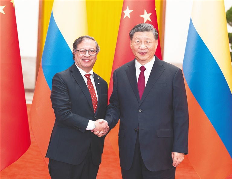 习近平深刻阐述中国式现代化的本质内涵。习近平强调,中方支持哥伦比亚独立自主探索符合本国国情的发展道路,支持哥伦比亚和平进程,希望哥伦比亚早日实现全面、持久、可持续和平,相信中国高质量发展和现代化进程将为包括哥伦比亚在内的世界各国带来发展新机遇。中哥关系基于平等、互惠、共赢。欢迎哥伦比亚早日加入共建“一带一路”大家庭,实现共同发展繁荣。双方要用好经贸混委会机制,优化双边贸易结构,加强信息通信、数字经济等领域合作,中方鼓励更多哥伦比亚特色优质产品进入中国市场。欢迎哥方加入中方提出的全球清洁能源合作伙伴关系倡议,共享绿色发展机遇。双方要加强汉语教学、艺术团组互访、旅游等人文交流,加强禁毒、打击跨国犯罪等领域双边执法合作,希望哥方保障好在哥中国公民、企业、机构的安全。中哥同为发展中国家,双方要加强在国际事务中的沟通协作,维护发展中国家共同利益和国际公平正义。