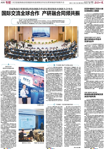 起步晚但发展快,海南深海产业备受各方关注。论坛犹如一个具象的“显示屏”,生动地向八方来宾展示科技城深海科创新发展新成效,传递海南包容开放的国际合作强音。