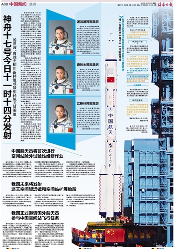 中国航天员将首次进行 空间站舱外试验性维修作业