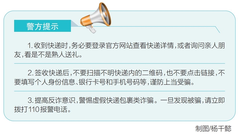 本报海口10月27日讯 (见习记者宋灵云)10月27日,海南省反诈中心发布紧急通知,提醒广大群众警惕虚假快递包裹类诈骗。