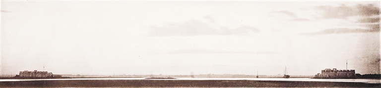1866年刊行的同治《广东图》,首次标绘出海甸岛前身的五个大小沙洲,可以认为是具体描述。1870年刊行的文字补充版《广东图说》描述道:“县北海口所城北,大海中有海岛五,中有得胜台,西北为西炮台,东北为东炮台,又东为牛始炮台,又东为白沙墩(小字原注:下有暗沙礁石,水势湍急,最为险隘,海船可以寄碇)。”