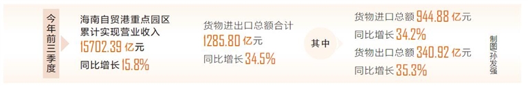 在营收方面,前三季度13个重点园区中12个园区营收实现增长,其中11个园区实现两位数及以上增长。洋浦经济开发区、海口江东新区、三亚中央商务区、海口综合保税区四个园区拉动园区总营收增长15.8个百分点。