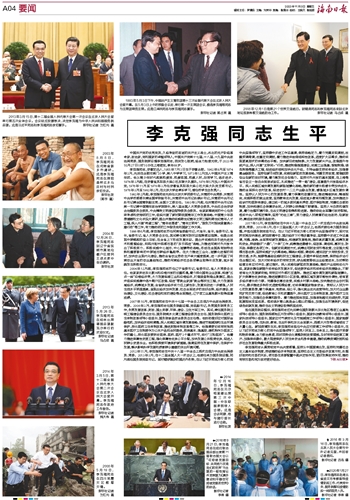 李克强同志认真贯彻党中央决策部署,坚持从中国国情出发,坚持和完善社会主义基本经济制度,持续推动经济体制改革,坚持社会主义市场经济改革方向,处理好政府和市场的关系,使市场在资源配置中起决定性作用,更好发挥政府作用,推动有效市场和有为政府更好结合。下转A05版