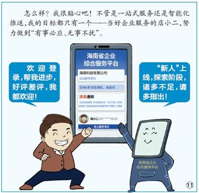 企业信息“一码通展”、企业事项“一码通办”、企业服务“一码通达”……于日前上线的海南省企业综合服务平台,将全省各类涉企服务、码上应用相融合,一站式归集和解决企业诉求,并试点推出政策精准匹配和个性化推送功能。化繁为简、精准智能,如此服务畅通了企业发展的快车道,呵护的正是营商环境优化大局。