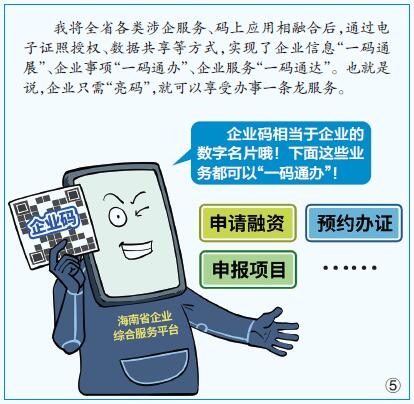 小小二维码,海纳多种涉企场景,从多到一,服务更加集成,不仅办出了服务效率,也办到了企业的心坎上。看得见的事项融合、定制化服务,背后是看不见的数据共享、流程再造、平台建设,体现了专事专办的服务精度和温度,折射出政务服务理念的提升。从海南的实践来看,尽管已经有了一体化在线政务服务平台“海易办”,还专门分设精准对接企业需求的平台,足见其精益求精的态度。